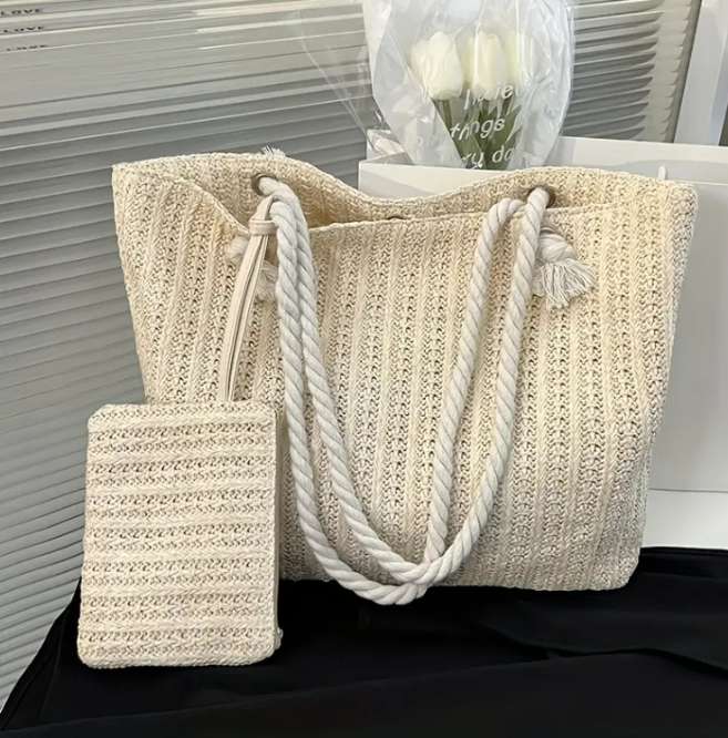 CONJUNTO DE BOLSO TEJIDO GRANDE PARA MUJER