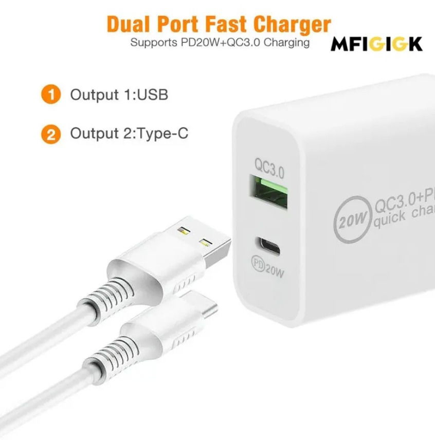 CARGADORES DE 20 W DE 2 ENTRADAS (USB Y C)